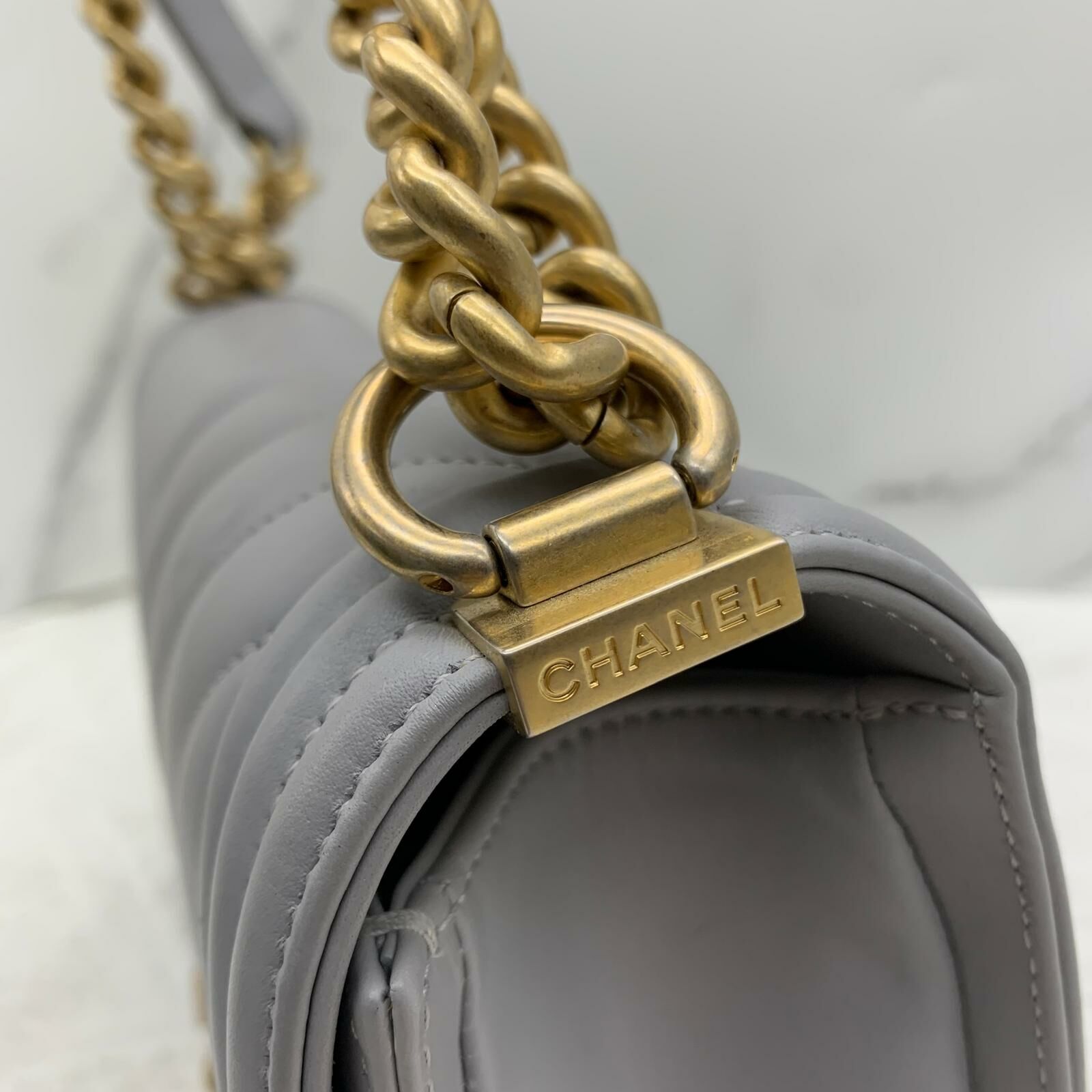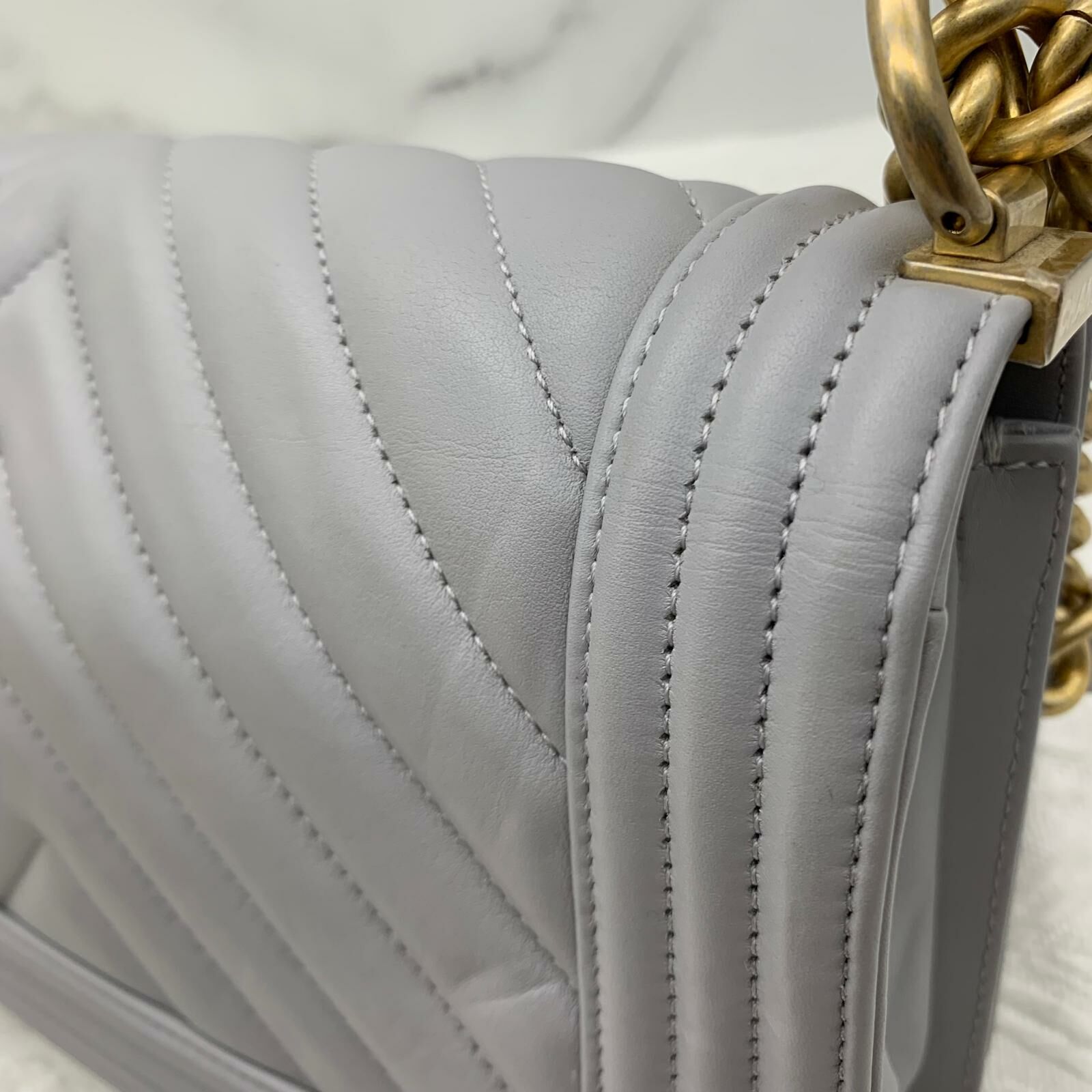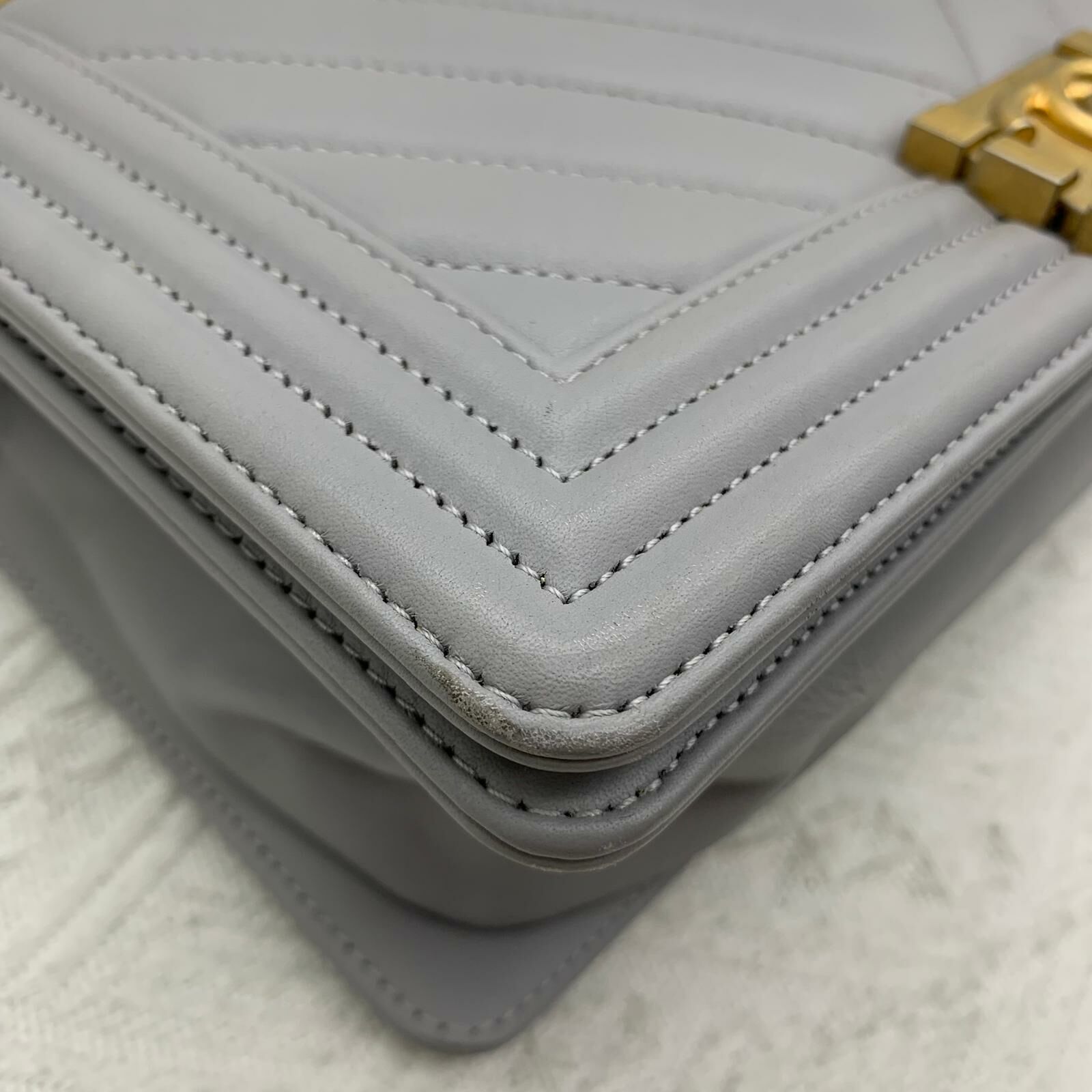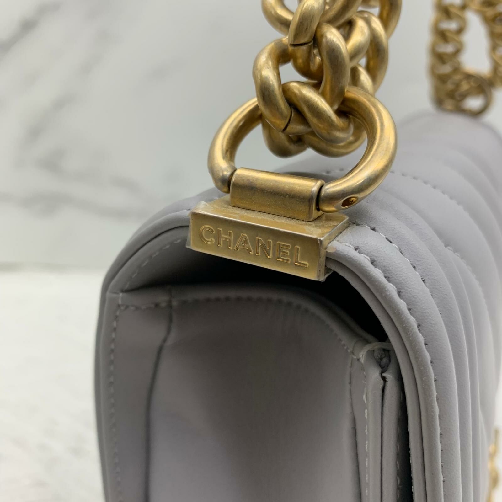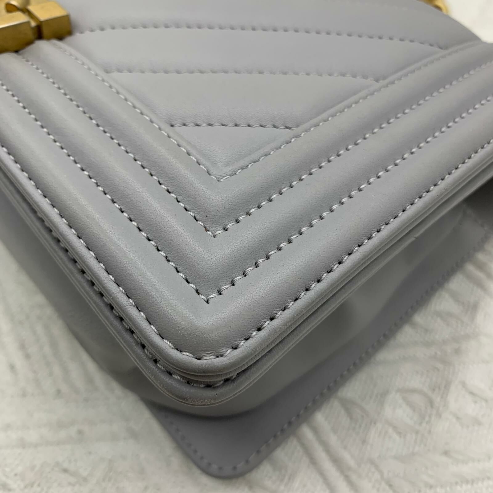 Chanel Boy 25 (灰色x金扣)