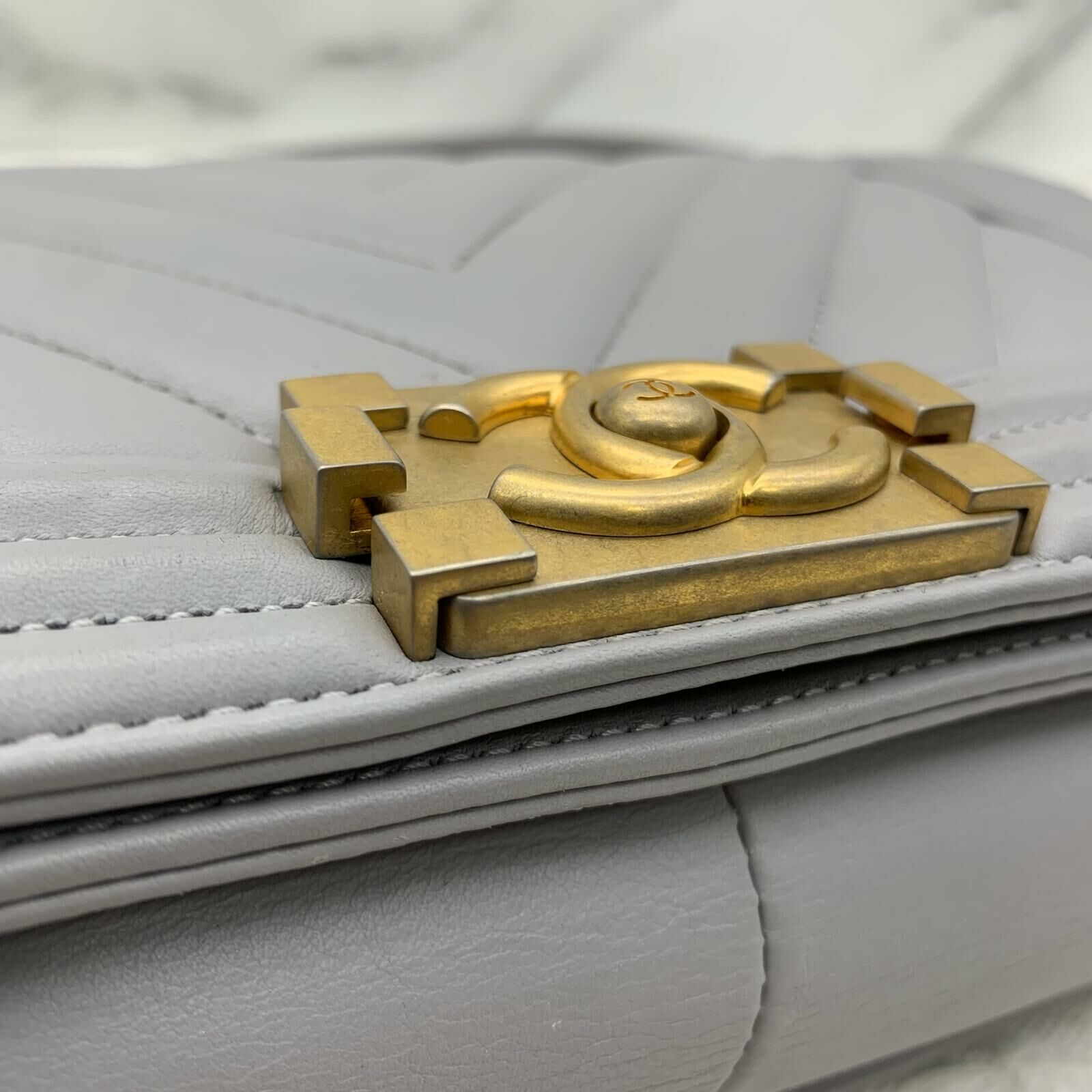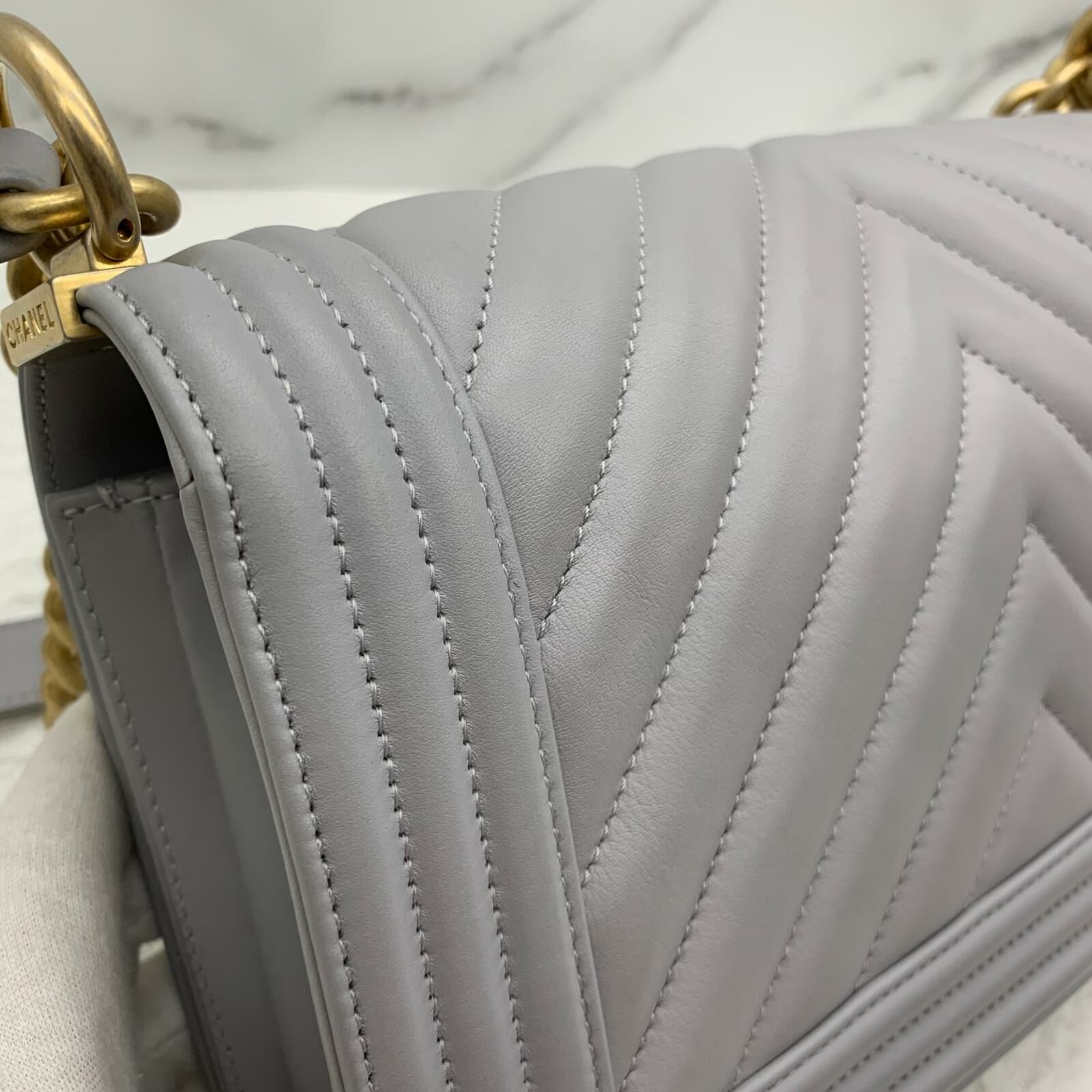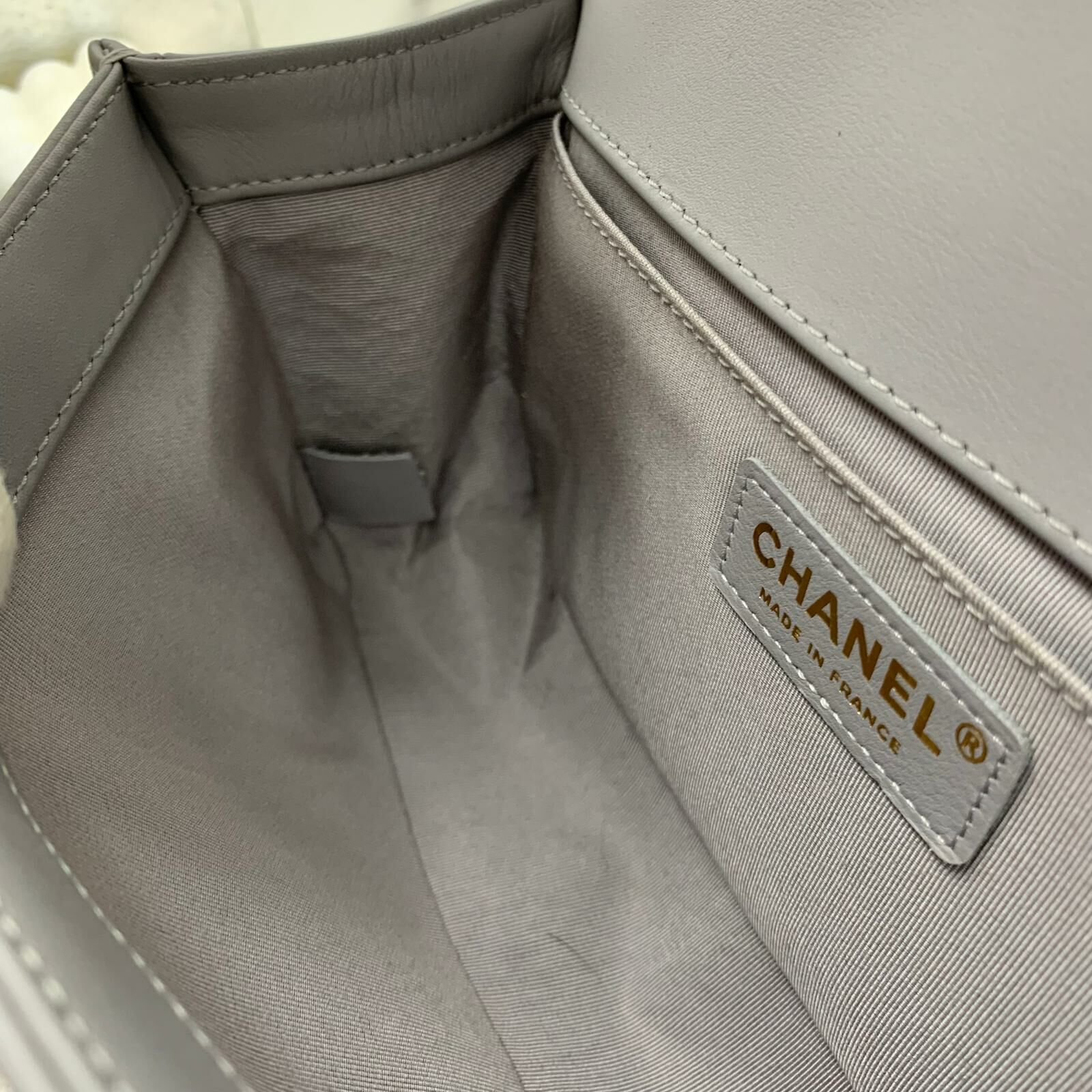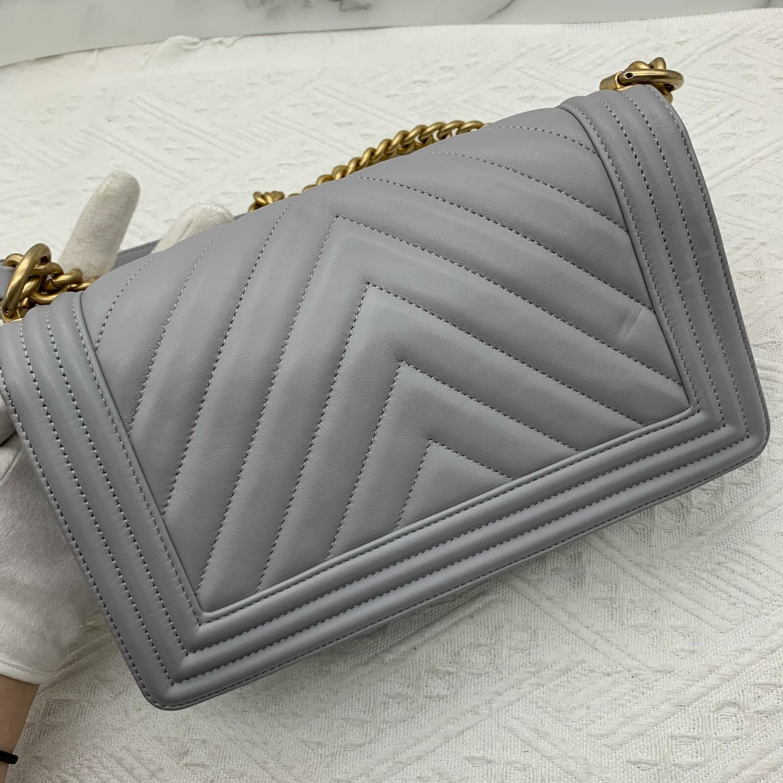 Chanel Boy 25 (灰色x金扣)