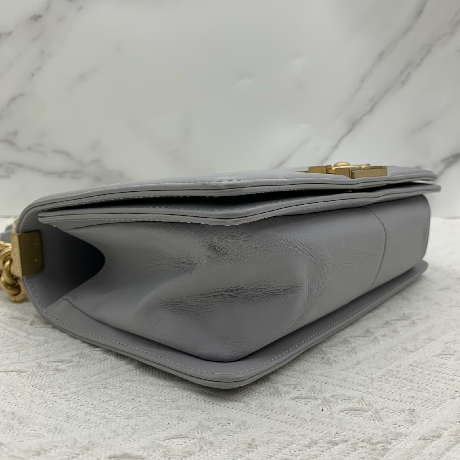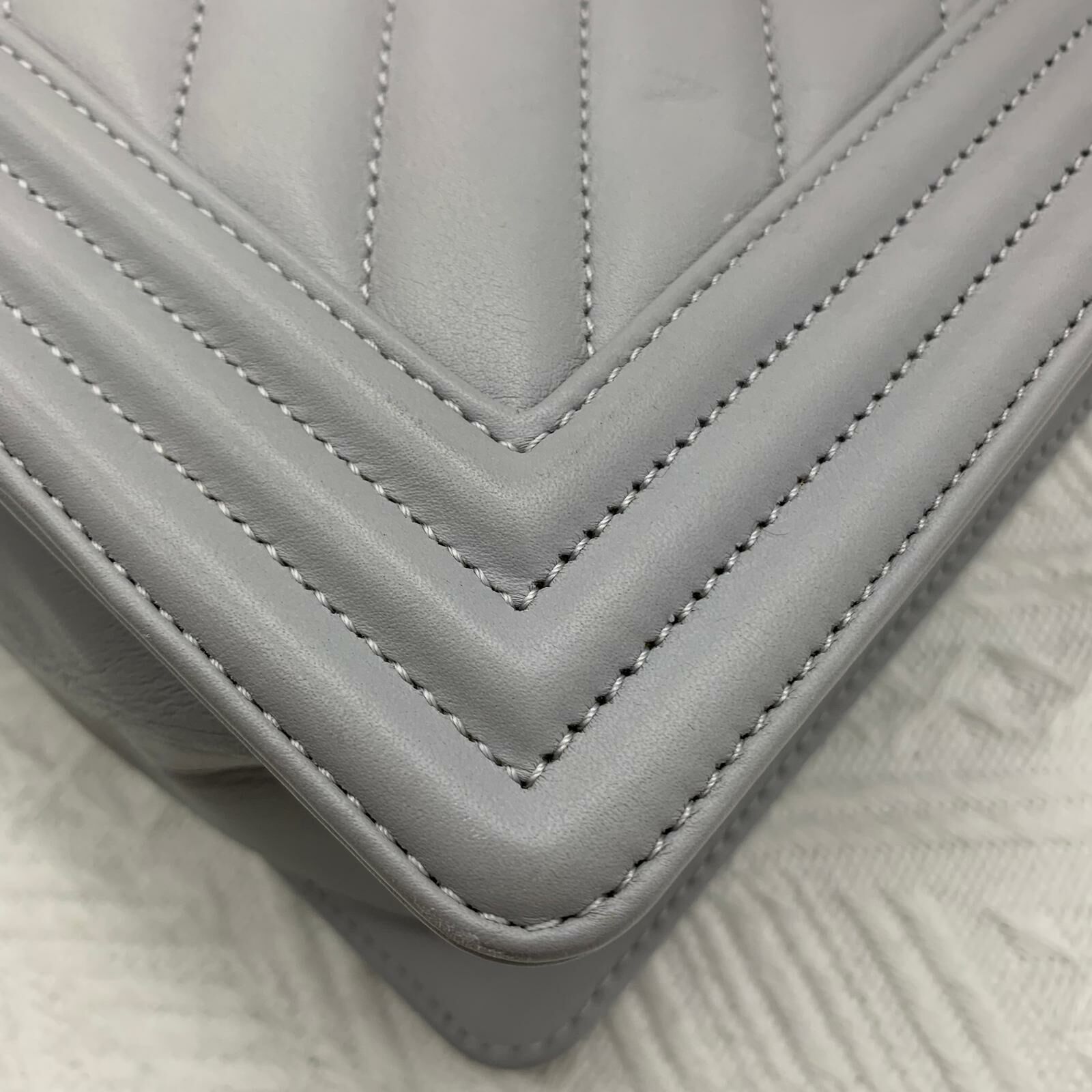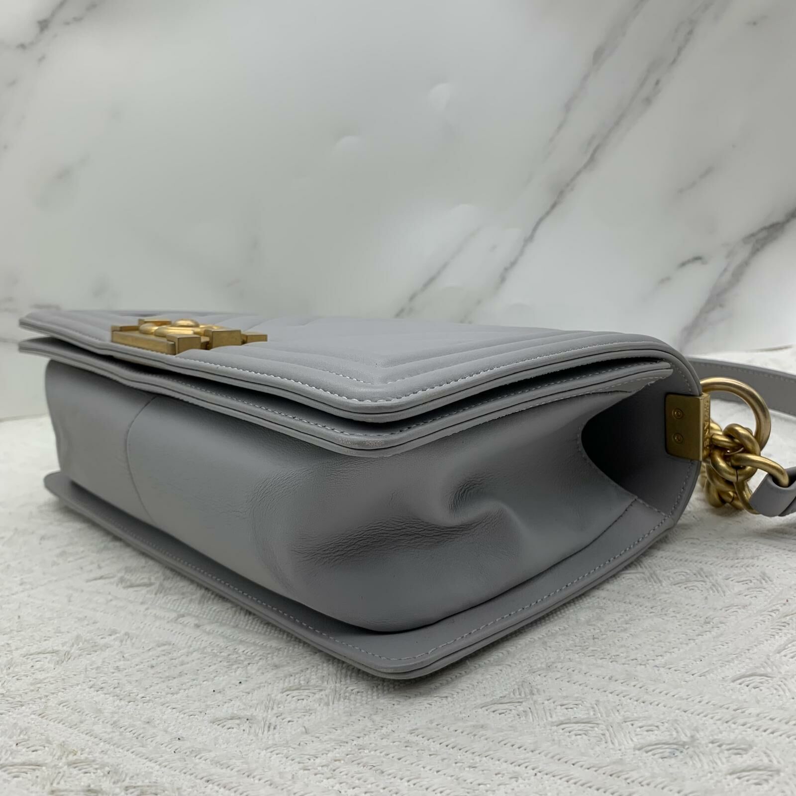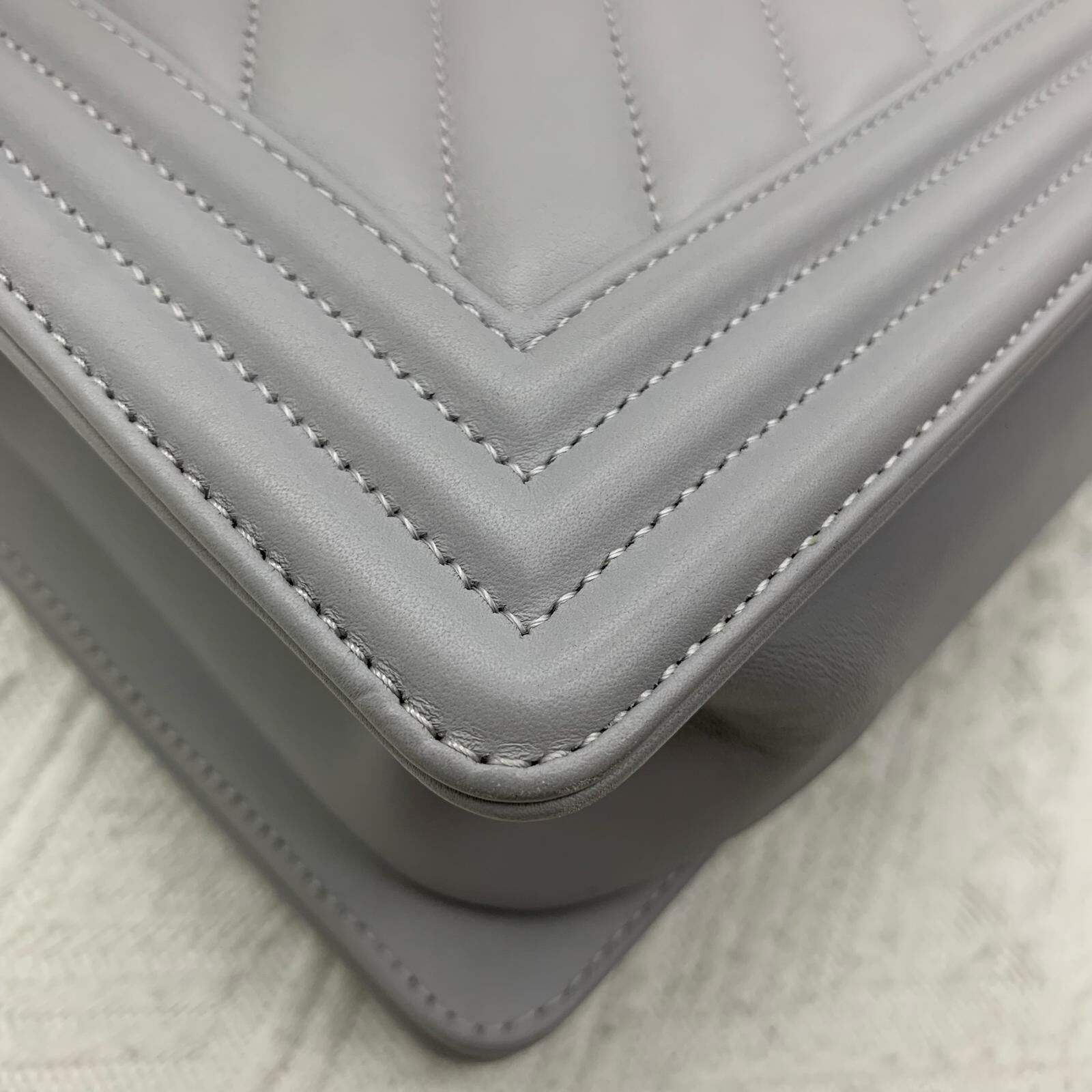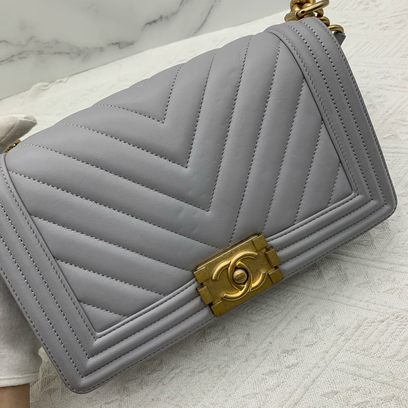 Chanel Boy 25 (灰色x金扣)